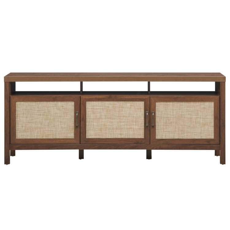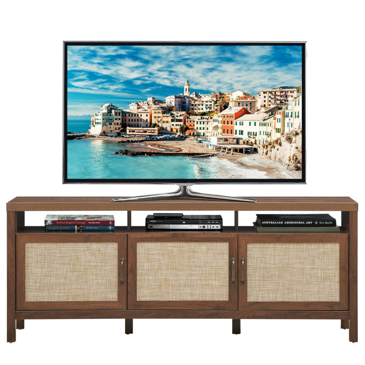 Let this TV storage cabinet bring families and friends a lot of fun! On the one hand, you can put a TV (support up to 65 inch) on this wooden table and make it a great entertainment center. On the other hand, you can also use it as a storage cabinet to organize books, cables, DVDs, decorations and more, making your room clean and neat. Crafted from premium particleboard, this TV table is sturdy and durable. With a modern and elegant look, this TV stand can easily fit various room styles well, which is suitable for the living room, bedroom, dormitory and more.