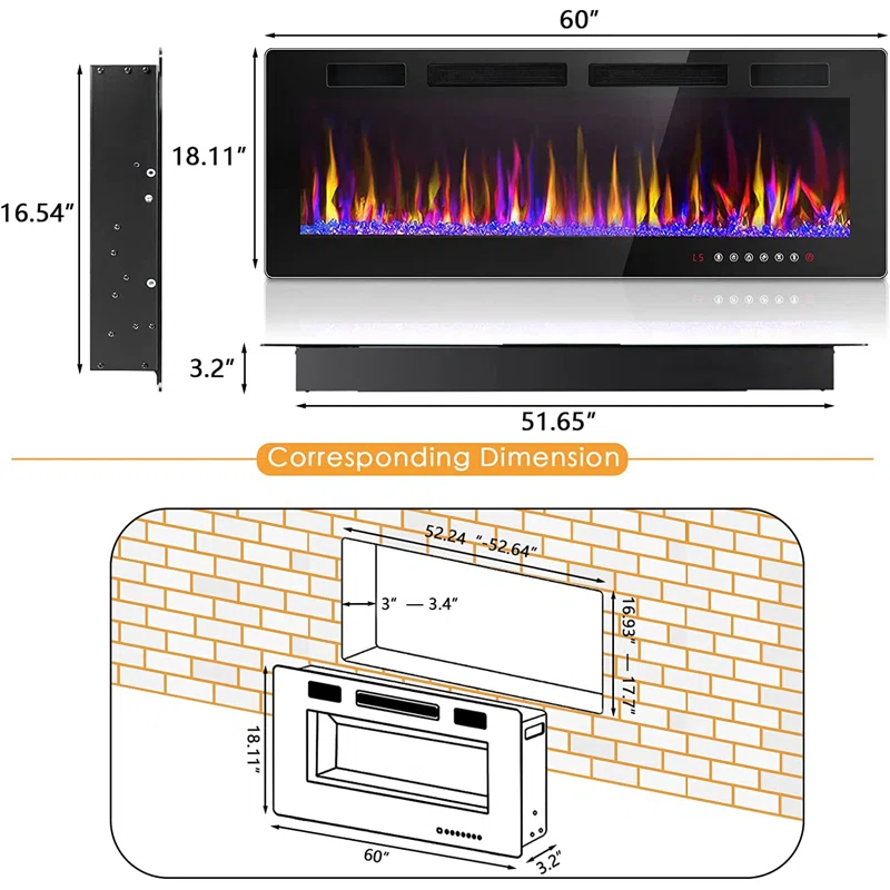 Stylish décor: This electric fireplace not only can be Recessed or semi-recessed in the wall but also can be wall-mounted.This mounted fireplace will add a welcome spark of style to your room no matter where you hang it. Once it is on the wall, it takes up no extra room on the floor which makes it a perfect fireplace for anyone short on space! Create a cozy ambiance not only in your home. This is also ideal for commercial and office use.