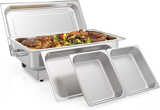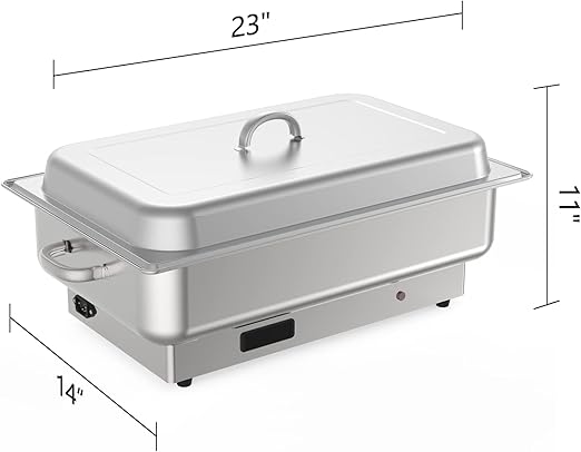Constructed from durable stainless steel, this buffet server is designed to keep your food warm and ready to serve. With a generous 9QT capacity, you can easily store and serve large quantities of your favorite dishes. The sleek and modern design of the buffet server makes it a stylish addition to any table or buffet setup.