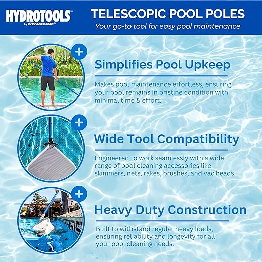 {HYDROTOOLS PRO TIPS} Hydrotools By Swimline Item # 8356M; This pole serves as the perfect compliment to other Hydrotools nets, skimmers, rakes, brushes, vac heads & more. Examples include Hydrotools #’s 8039, 8040, 8150, 8110, 8220